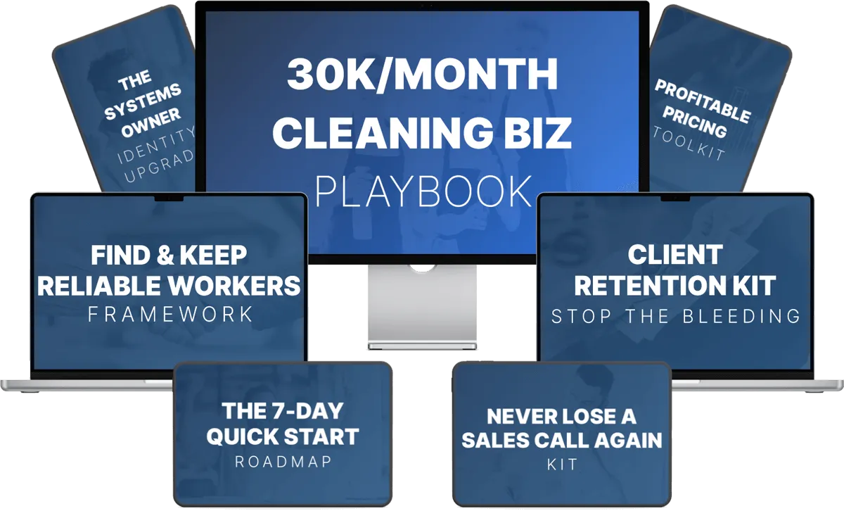 When you purchase The $30K/Month Cleaning Biz Playbook, you're getting access to a comprehensive playbook designed to transform your cleaning business from chaos to clarity.
