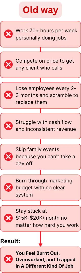 Forcing you to spend another day, month, or year working 70+ hours, missing out on family time, and staying stuck at $15K-$20K/month.
